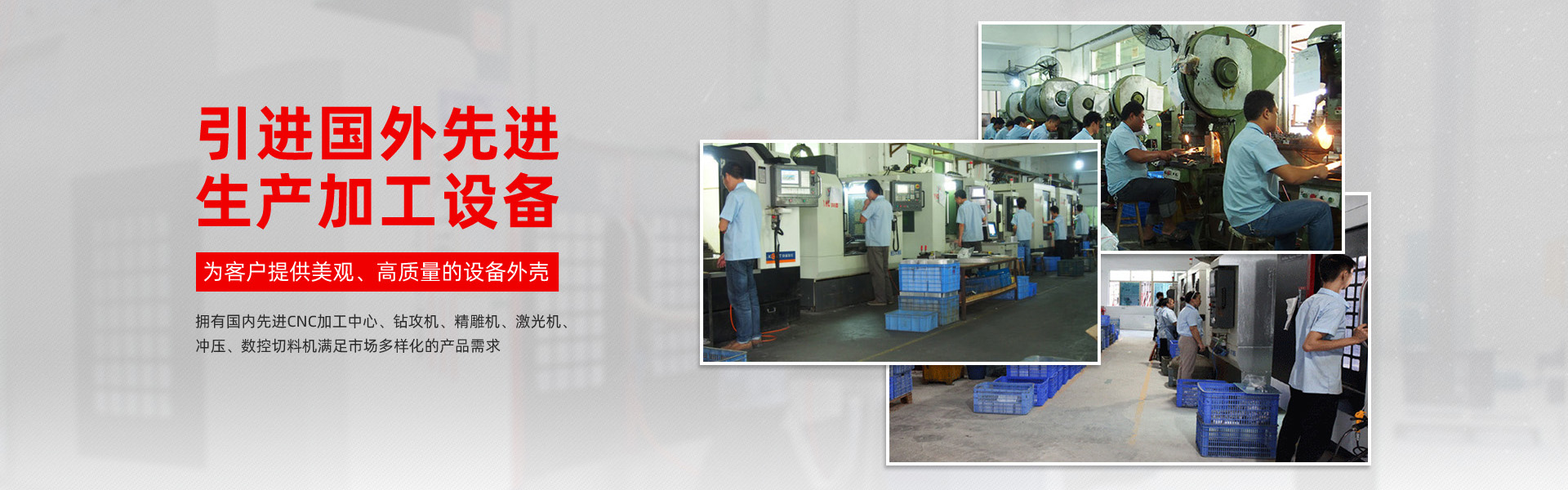 生產(chǎn)設(shè)備采用國內(nèi)CNC加工中心,鉆攻機(jī),精雕機(jī),激光機(jī),滿足市場多樣化的產(chǎn)品需求!
